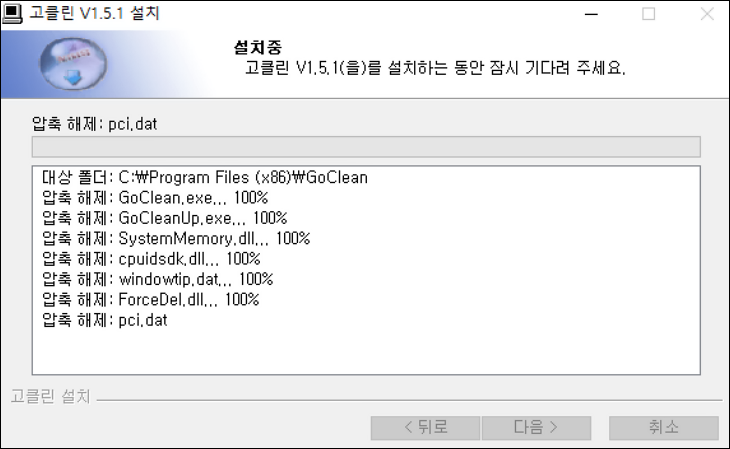 ▼고클린 설치가 진행됩니다. 5분 내로 설치가 완료됩니다.