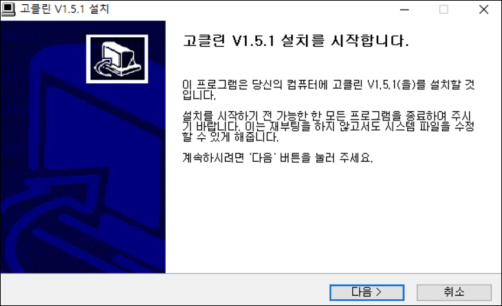 A) 고클린은 특정 회사 프로그램을 사용할 경우 실행이 불가능할 수 있습니다. 또한 악성코드가 고클린 실행을 제한할 수 있습니다.