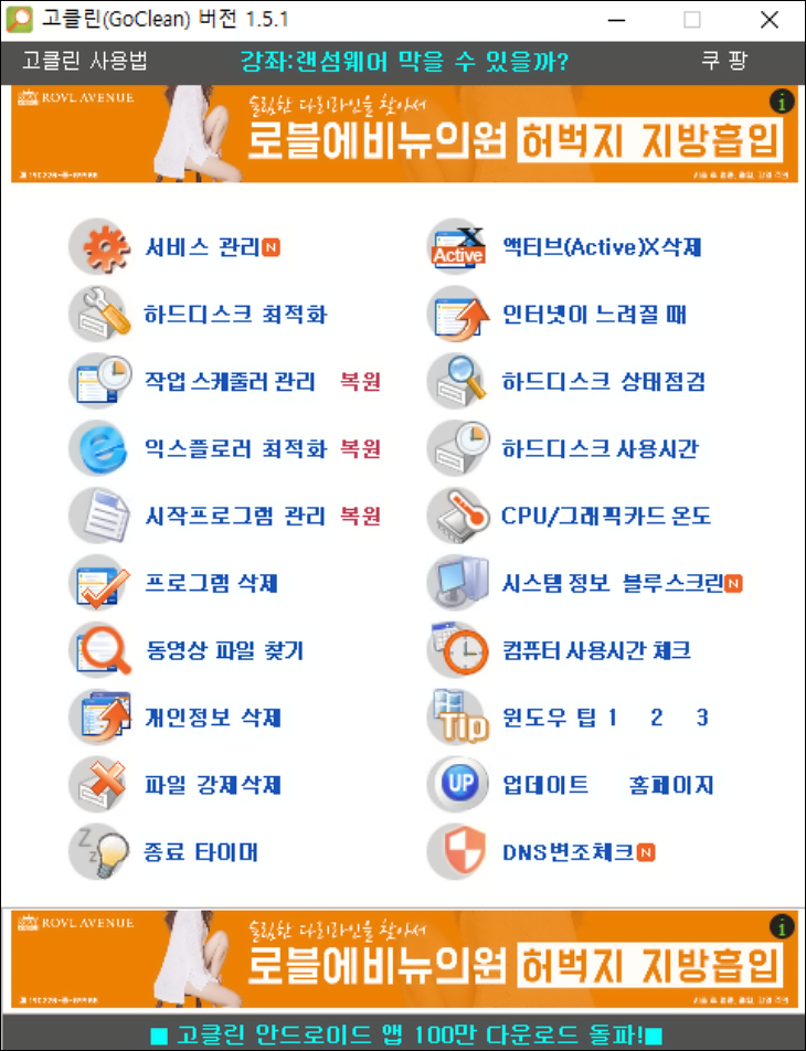 고클린 컴퓨터 최적화 기능