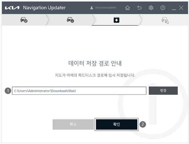 내비게이션 업데이트 파일을 PC에 임시로 저장하는 단계입니다.