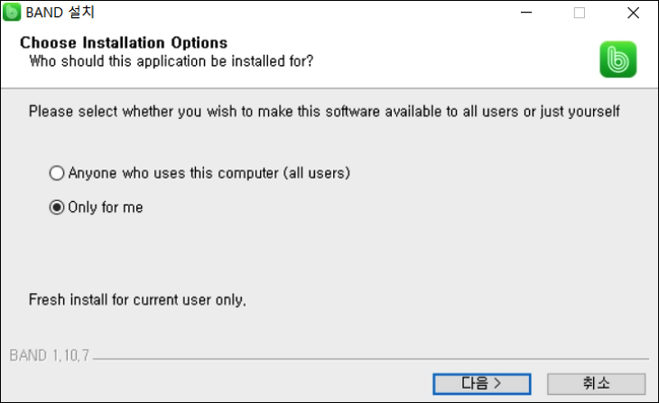 상단에서 제공하고 있는 링크를 통해 네이버밴드 PC버전 다운로드를 완료했다면, 설치파일을 실행해 인스톨을 진행해 주세요. 네이버밴드 설치파일 저장위치는 '내 컴퓨터 > 다운로드' 폴더에서 확인할 수 있습니다.