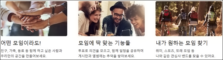 모임에 필요한 투표나 일정관리, 약속시간 설정 등을 간편하게 지정할 수 있으며, 사진이나 동영상 파일을 공유하며 취미를 공유할 수 있습니다.