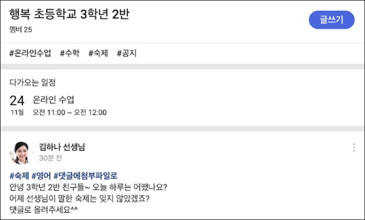 네이버밴드는 선생님이 학생 및 학부모와 편리하게 소통할 수 있는 기능을 제공합니다. 우리 반 밴드를 개설하고 공지사항, 숙제관리, 쪽지시험 등을 이용할 수 있습니다.