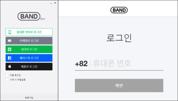 네이버 계정 연동을 원하지 않는다면 하단에 '회원가입'을 통해 밴드 계정을 새롭게 생성할 수 있습니다.