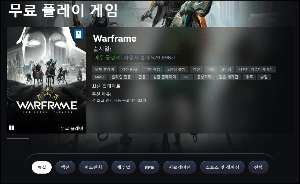 - 좌측 상단의 [상점 > 통계]를 통해 최고 인기게임과 최다 플레이게임을 확인할 수 있음