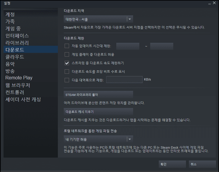 - 스팀 재접속 후에 다운로드 속도 체크