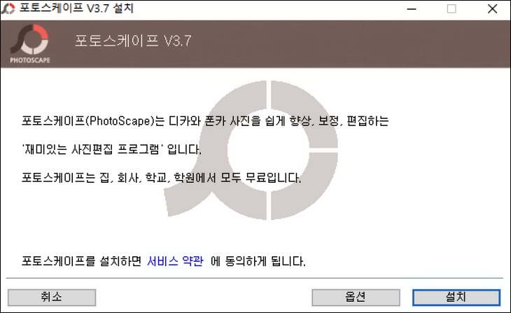 상단 링크를 통해 포토스케이프를 무료 다운로드가 완료되었다면, 설치 프로그램을 실행시켜 주세요.