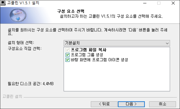 ▼설치 구성요소를 선택할 수 있습니다. 특별히 설정하는 부분이 아니므로 다음버튼을 눌러주세요.